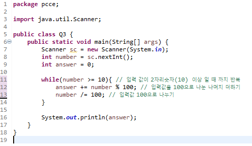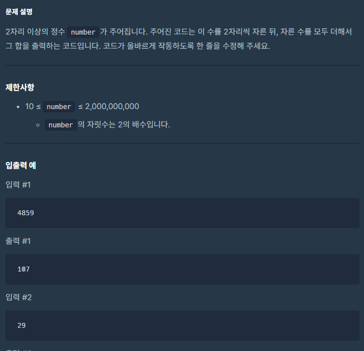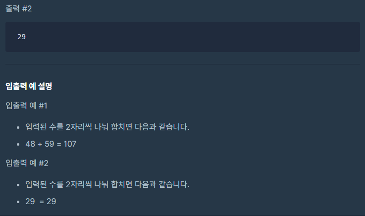 - 2자리 마다 잘라서 더하기