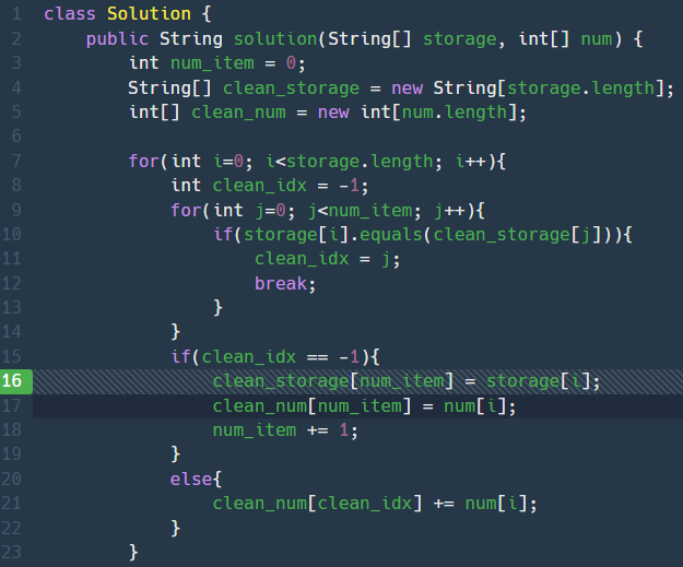 - 물건이름(storage)와 각 물건 갯수(num)이 입력됨