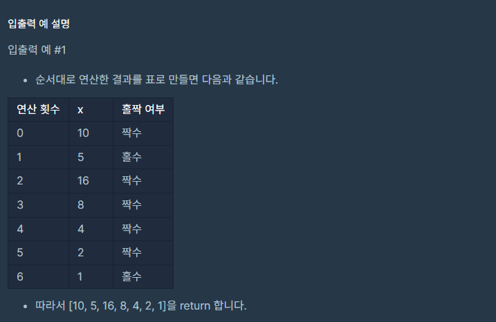 - x가 짝수면 2로 나누기, 홀수면 3곱한후 1 더하기